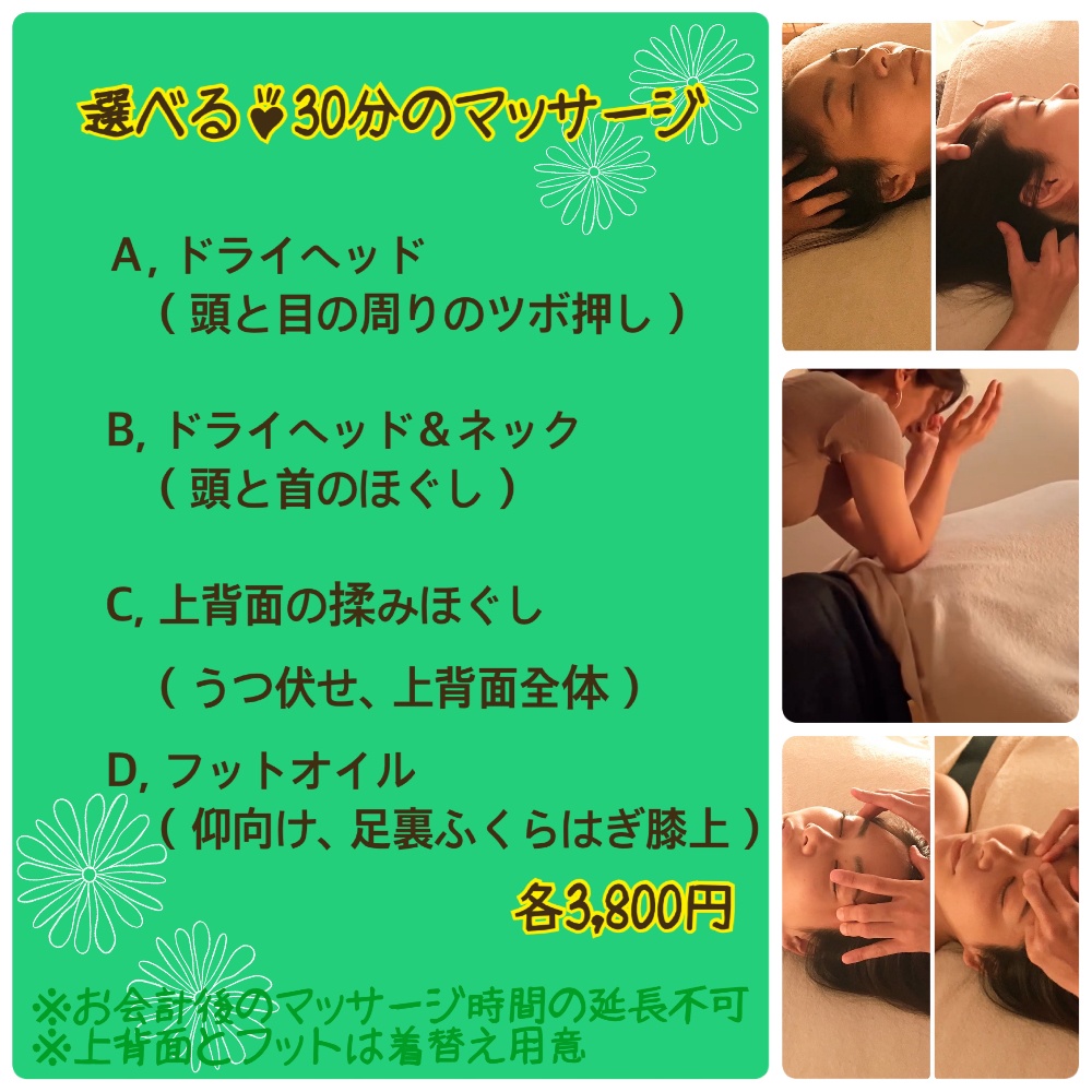 ・お一人マッサージの時間は120分迄となります