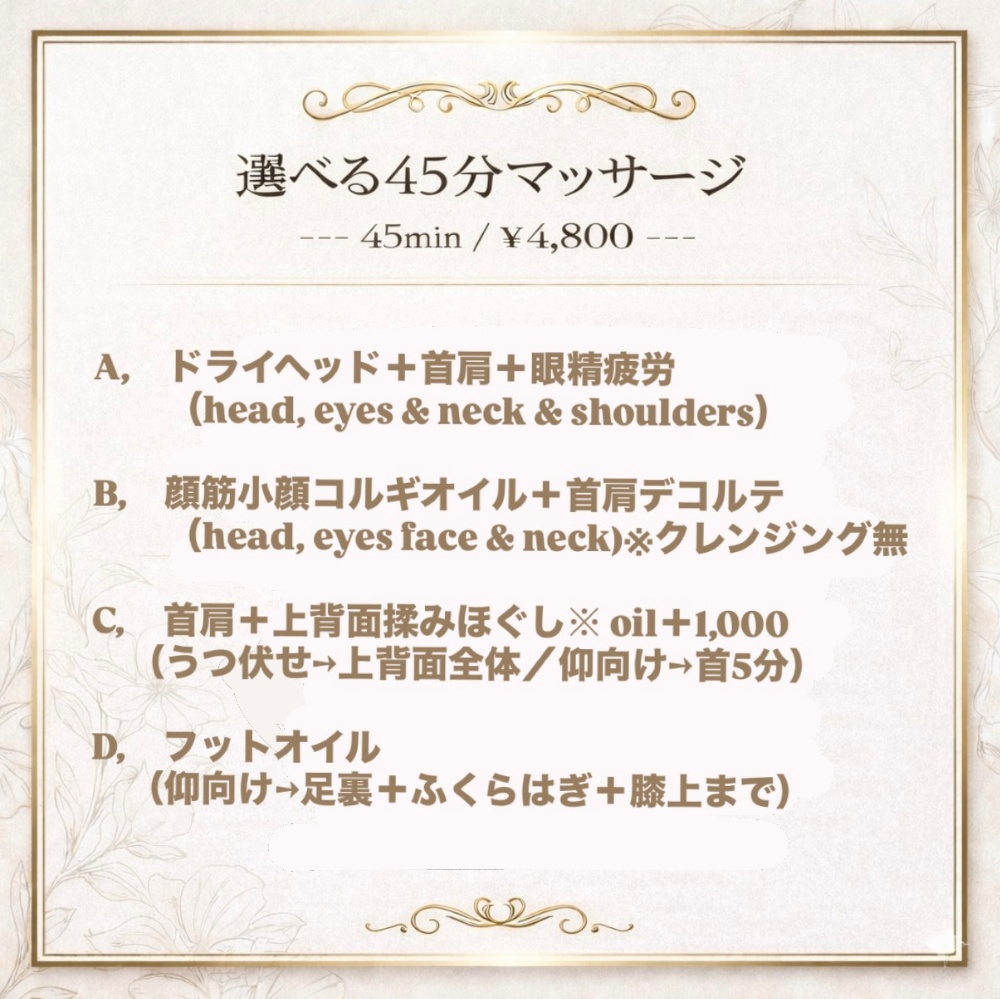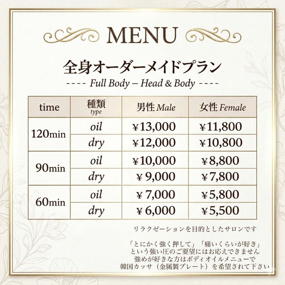 疲れMAXの方は▶︎大人気の全身120分!